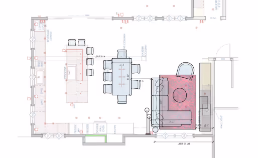 From the earliest plans, functionality guided every creative decision. The kitchen renovation began with re-configuring the flow, opening sightlines between the cooking and dining zones, maximizing storage, and choosing easy-care surfaces. Detailed drawings clarified not only cabinetry and construction, but also how furnishings and decoration elements would complete the space.